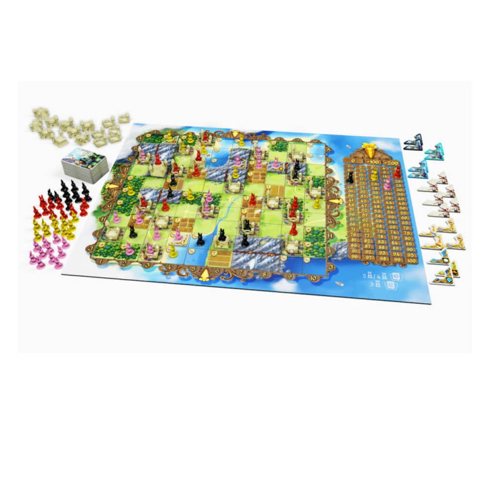 Draft cards and pick the right ones to position your warrens on the 100 squares of the board, provide resources to your colonies, build new cities to increase your influence, and plan your strategy to score big at the end of the game. Settle in lakesides or fields to collect water and grow carrots, gather mushroom sin the green forest, and climb the highest mountains to discover rare and precious resources… Secretly rally rabbit lords and recruit skillful masters to make your cities and resources even more valuable at the end of the game.