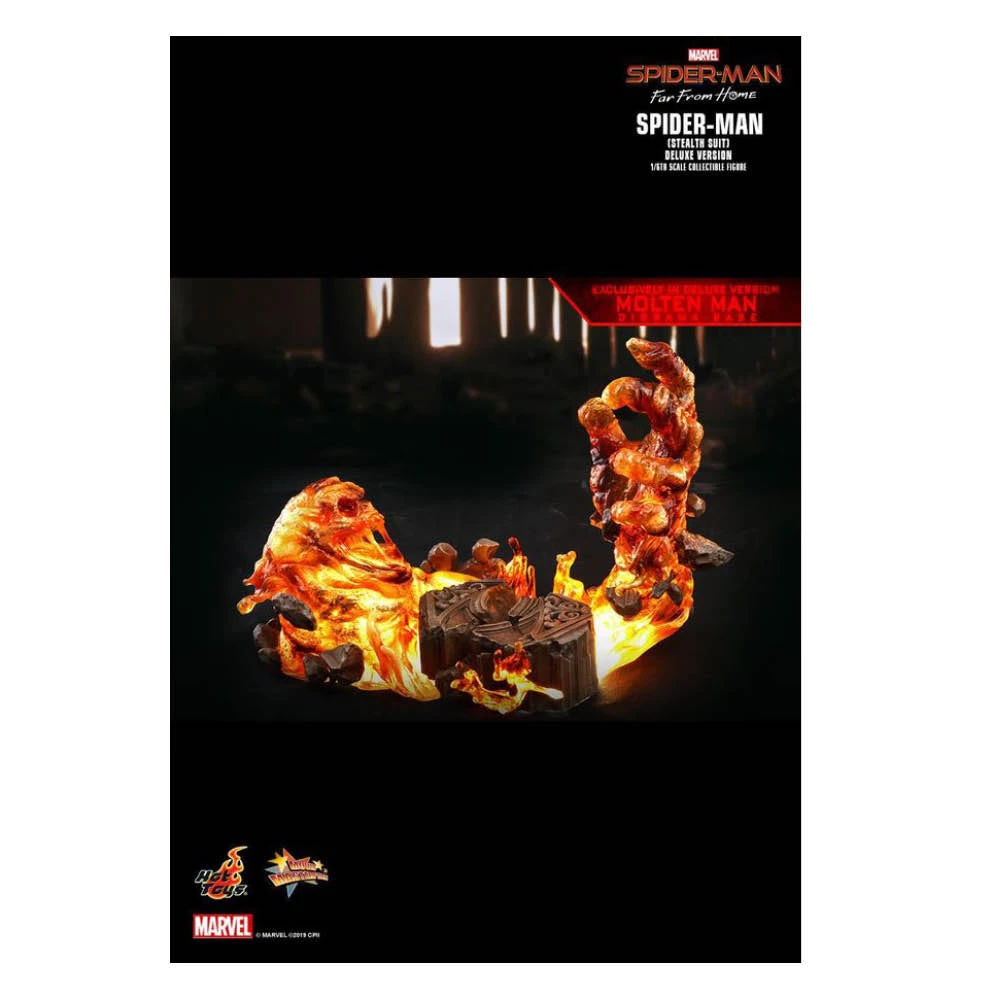 Hot Toys is pleased to have the first diorama figure base beautifully designed by Studio HIVE for the Deluxe Version. Inspired by the battle scenes against Molten Man, this elaborated diorama figure base features 2 LED light up modes is absolutely a must-have for fans of Spider-Man.