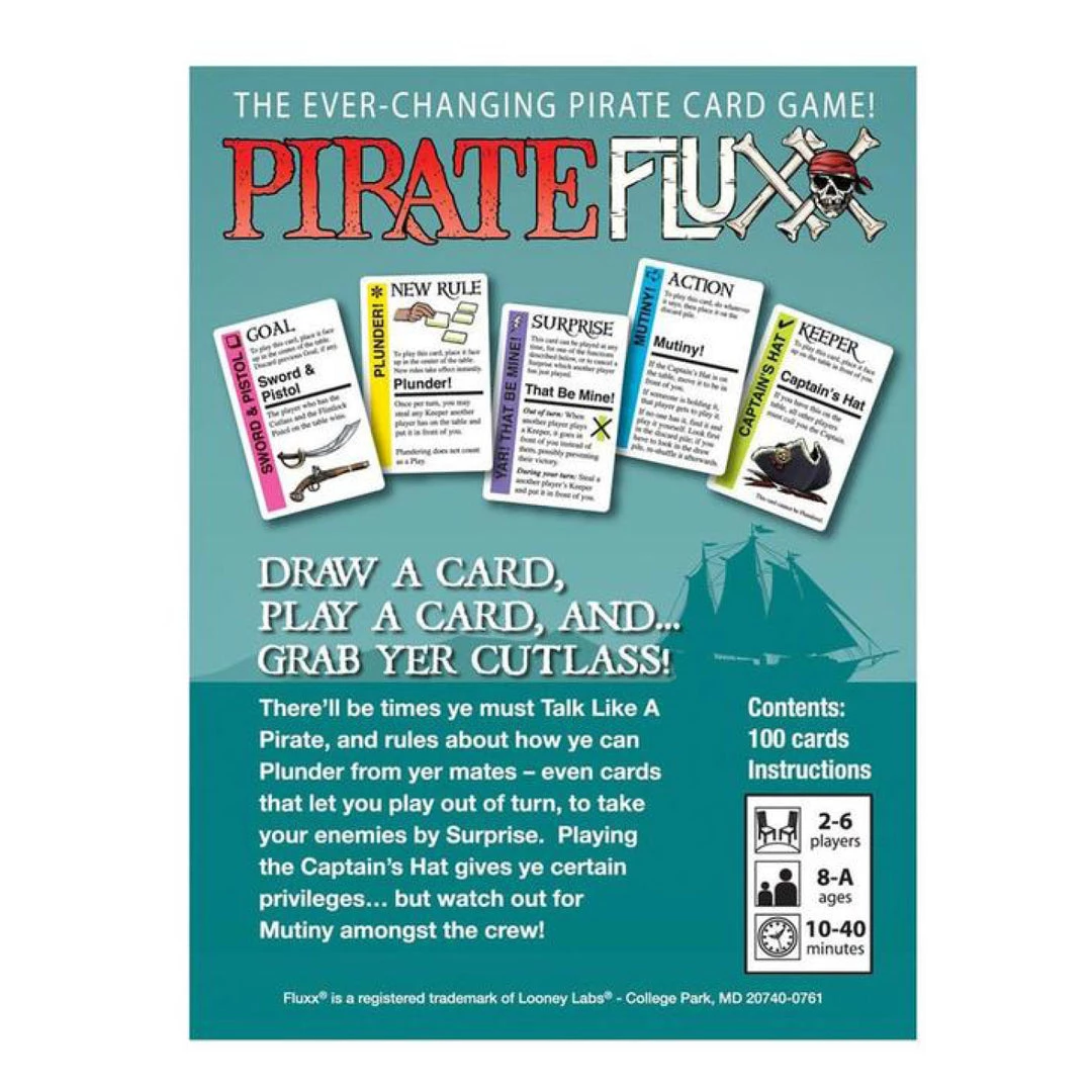 Yarr! Grab Yer Cutlass! Pirates Have Taken Over Fluxx, The Ever-Changing Card Game, And Their Rules Be New And Strange. There`Ll Be Times Ye Must Talk Like A Pirate, And Rules About How Ye Can Plunder From Yer Mates. But The Most Excitin` Treasure Fer Fluxx Fans New And Old Is The Surprise! ` A New Card Type That You Play Out Of Turn!