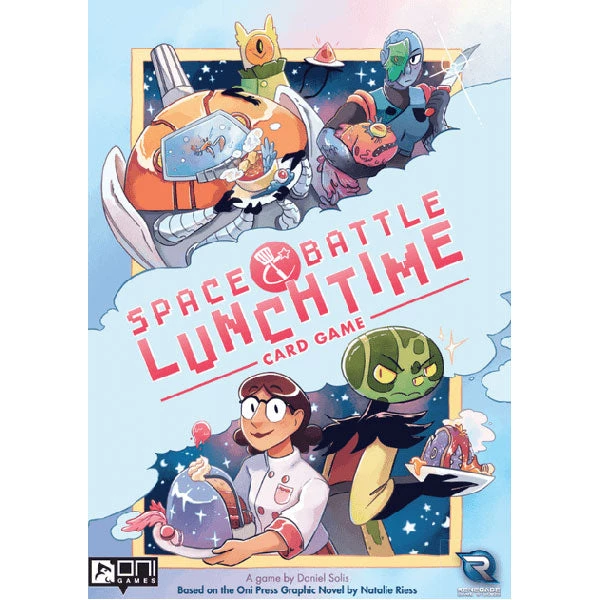 Space Battle Lunchtime Card Game is based on its namesake graphic novel by Natalie Riess, about Earth baker Peony who gets the deal of a lifetime when she agrees to be a contestant on the Universe’s hottest reality TV cooking show, Space Battle Lunchtime!