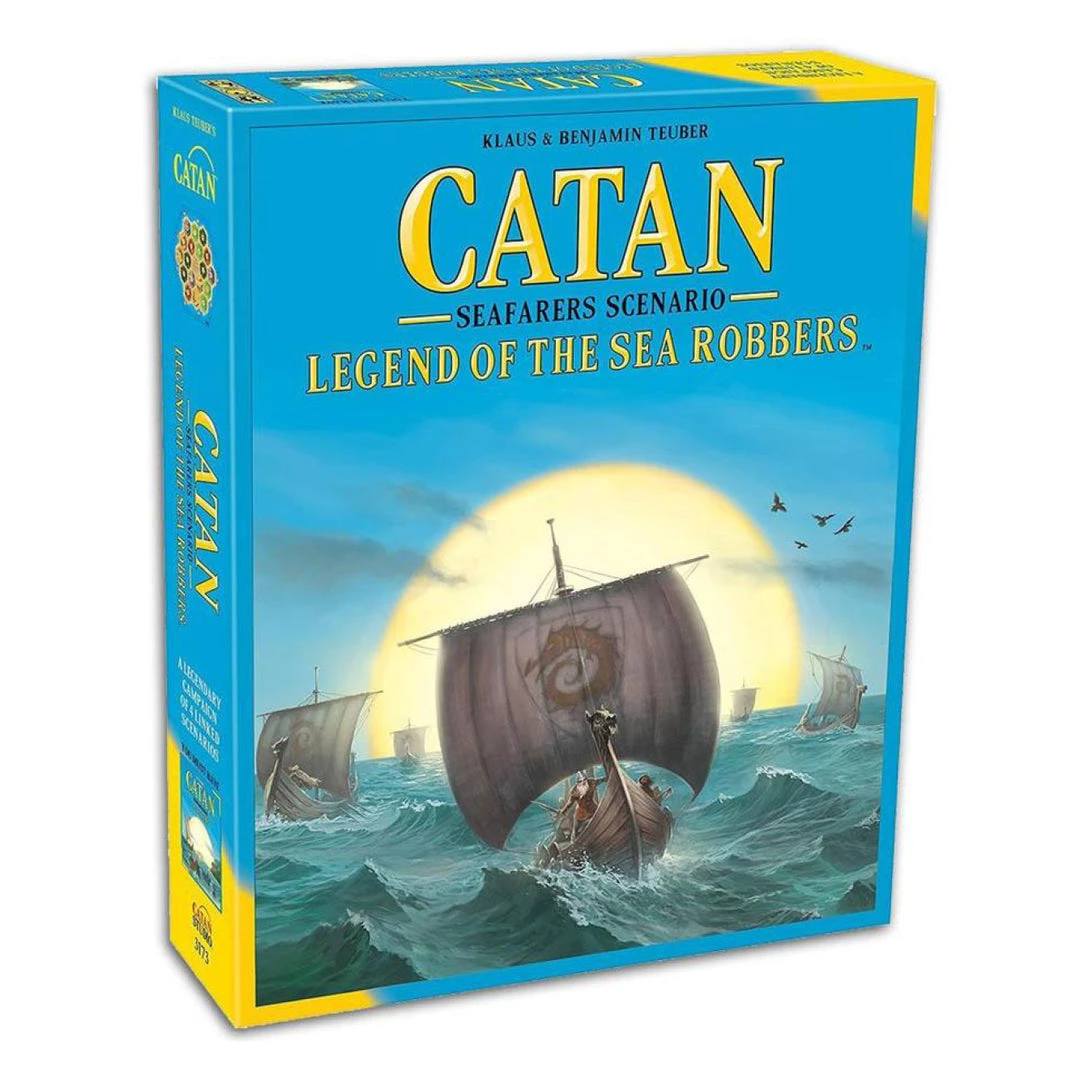 Seventy years after the arrival of the first settlers, the Catanians have expanded throughout Catan. In Catan: Legend of the Sea Robbers, you and your fellow clan leaders play through four linked chapters, exploring new surroundings by sea. In each chapter, the Council of Catan provides a special mission that not only benefits your clan, but helps maintain peace throughout these new lands. Faced with the threat of the Sea Robbers, it is important for you to work to benefit your clan and open up new regions by building roads and settlements, always being mindful of Catan’s common good. The tasks given by the Council are their own reward and the ultimate goal—finding the right balance between strengthening your clan and completing these missions is key to the prosperity of Catan! This is not a standalone product. A copy of the Catan and Catan: Seafarers is required to play.