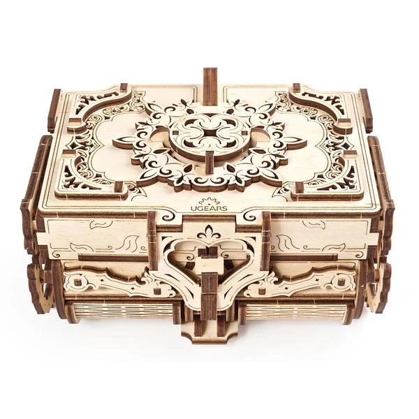 The Ugears Antique Box is following the tradition of its predecessors, other Ugears storage sets such as, the Ugears Treasure Box with a smart mechanism that allows the cover to smoothly slide to the side or the Ugears Flower that features a little figurine inside the flower to store jewellery on to name a few. The Antique Box, however, goes further in the art of keeping your valuables with style. Whether you are new to Ugears smart mechanisms or already familiar with them, this 3D puzzle set will still leave you amazed.