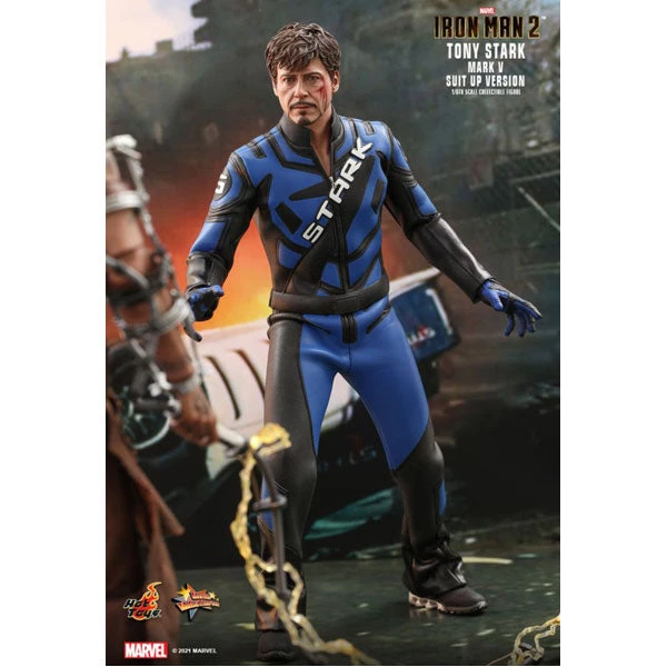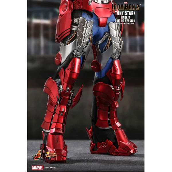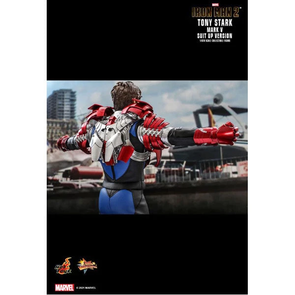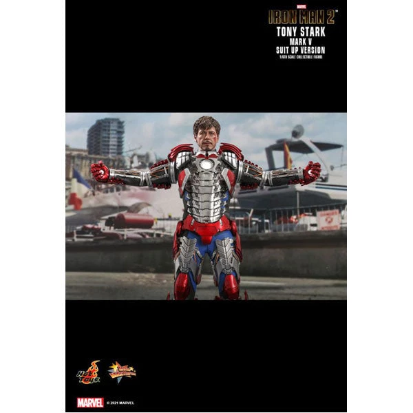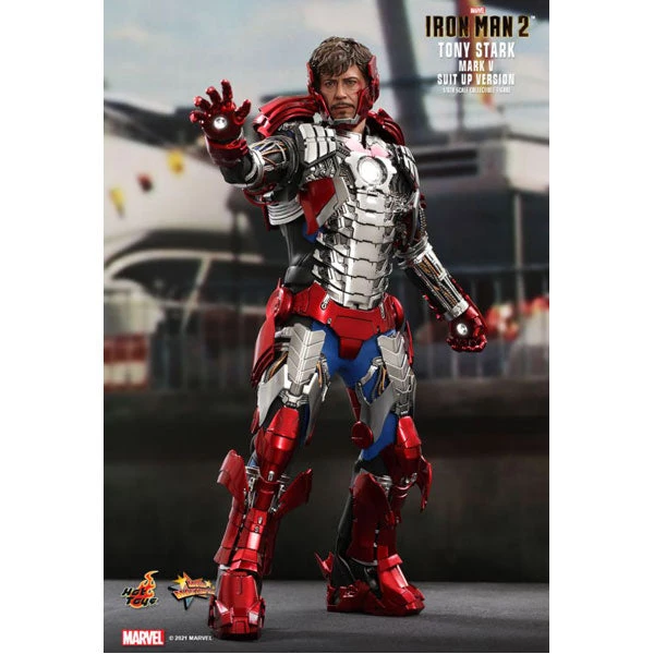 Inspired by the Mark V suiting up scene on the race track in Iron Man 2 movie, Hot Toys is thrilled to introduce the 1/6th scale Tony Stark (Mark V Suit up Version) collectible figure. Demonstrates perfectly designed armor pieces with mechanical details and articulated function, allowing fans to assemble the stunning armor on top of the highly-detailed figure.