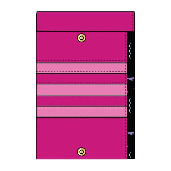 Totally Hair Barbie’s bright psychedelic-esque print dress takes the form of an all-over print, swirling across this wallet. On the front, the Barbie logo is featured in stunning applique, while Loungefly’s signature enamel plaque takes its place on the back.