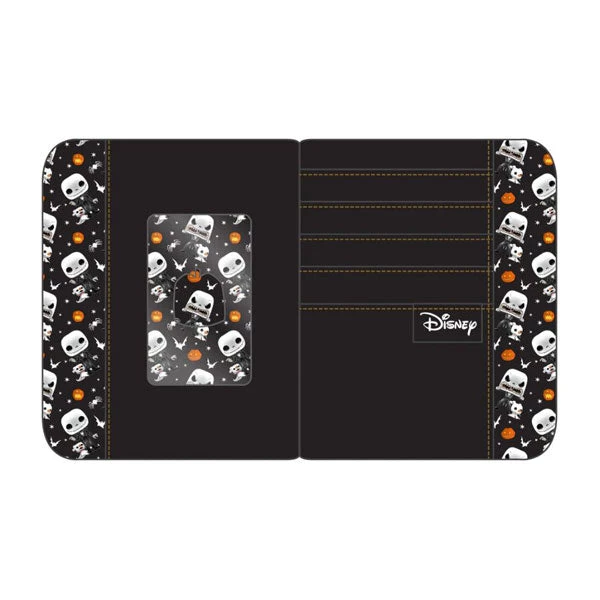 Everyone hail to the pumpkin king as this Funkoween exclusive design! On the front, Jack Skellington and Zero appear in Funko Pop! form outside the gates of Jack’s house. Turn the wallet around and you will find bats flying in the night sky while some eerie jack-o-lanterns sit beside a tree. With 5 slots for holding cards and a clear slot for holding ID, this spooky accessory has room to carry all your tricks and treats!