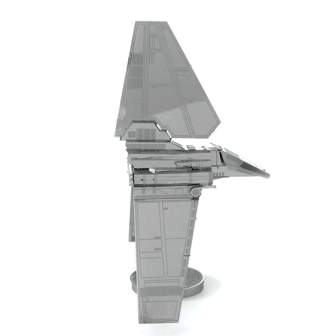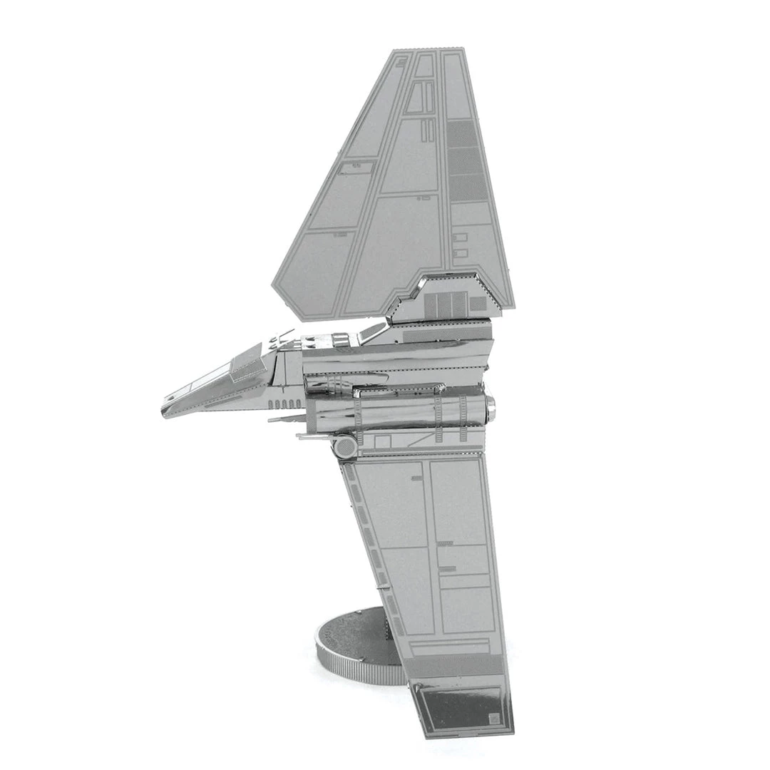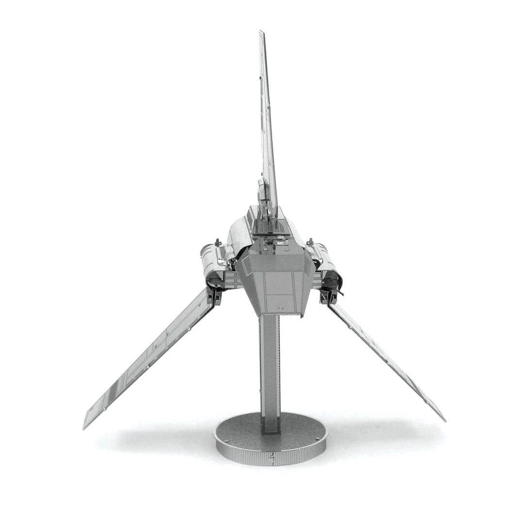 An elegant example that stands apart from typical brutish Imperial engineering, the Lambda-class shuttle is a multi-purpose transport used in the Imperial Starfleet. The Empire pressed the shuttle into service for both cargo ferrying and passenger duty. Even the Empire’s elite, like Darth Vader and the Emperor Palpatine used these shuttles. It has three wings: a stationary center foil and two articulated flanking wings. When in flight, the side wings fold out for greater stabilization. When landing, the wings fold in, shrinking the vessel’s silhouette. The well-armed vessel has two forward-facing double laser cannons, two wing-mounted double cannons, and a rear-facing double laser cannon. It is equipped with a hyper drive.