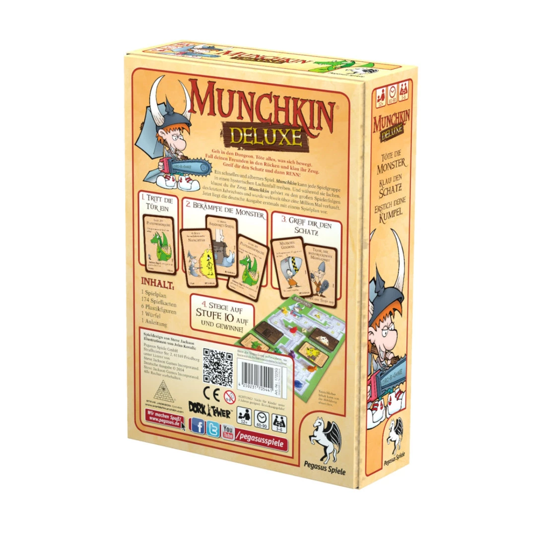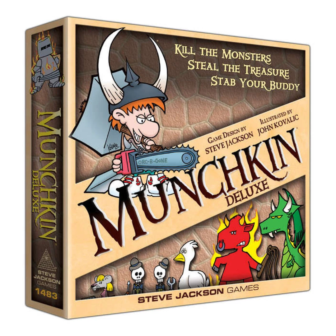 Munchkin has been a runaway hit for the last 10 years, with international sales of more than a million Munchkin games – plus lots and lots of supplements! Compete with your friends to kill monsters and grab magic items. Wear the Horny Helmet and the Boots of Butt-Kicking. Wield the Staff of Napalm . . . or maybe the Chainsaw of Bloody Dismemberment. Start by slaughtering the Potted Plant and the Drooling Slime, and work your way up to the Plutonium Dragon . . .