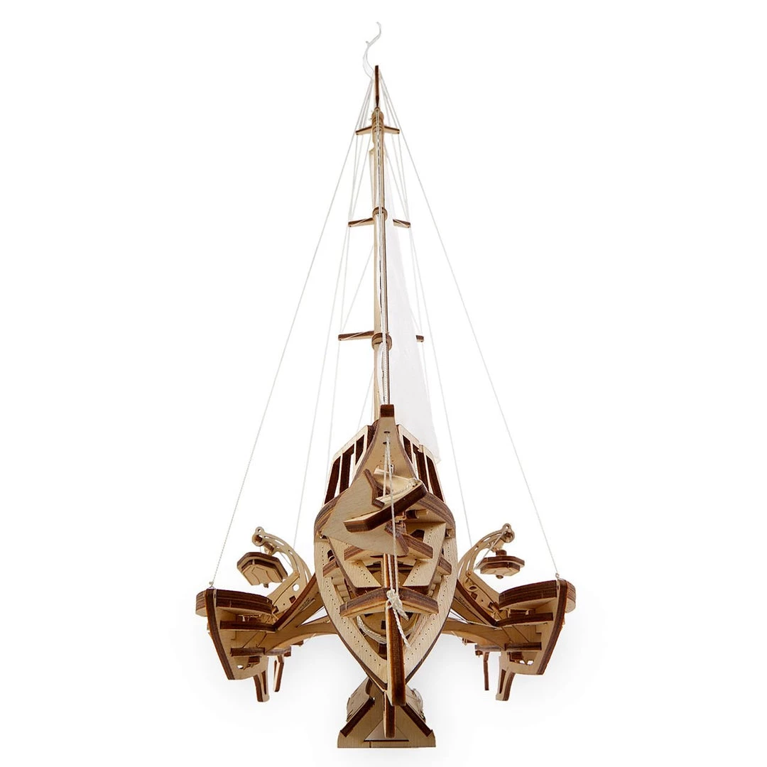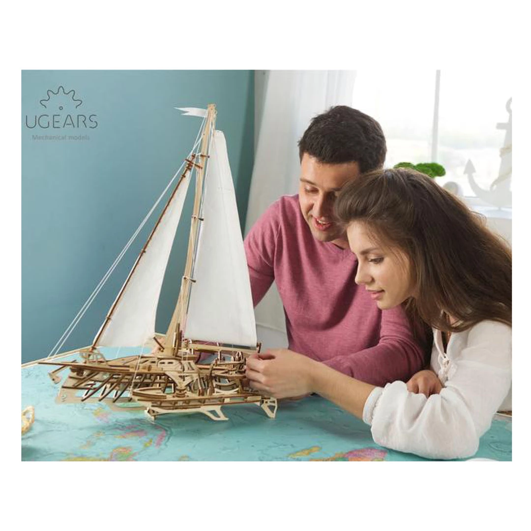 UGears Trimaran Merihobus invites you to leave your peaceful harbor and ride the tide for an adventure of a lifetime! This exquisitely detailed model is designed based on the prototype of a classic yacht and features traditional sailing vessel’s details, such as bulkheads, frames, and beams. The exposed, “skeleton”-like design of the Trimaran allows for an excellent view of the boat’s internal working mechanisms and the specifics of the design. The exposed engineering elements such as winches, rigging, and hulls make Merihobus a very realistic, miniature copy of an actual sailing vessel. To make the Trimaran Merihobus sailing yacht even closer to real life, we added several templates to create your boat’s own customized flag. One finishing touch in the design of the Trimaran is a carved tiny seahorse in the bow of the boat. This aquatic cutie, also known by the name of “Merihobus”, gave the boat her name.